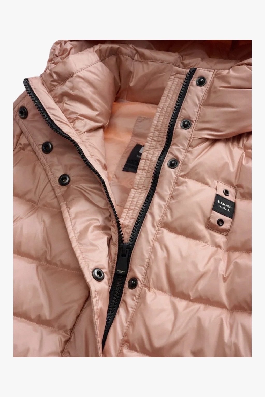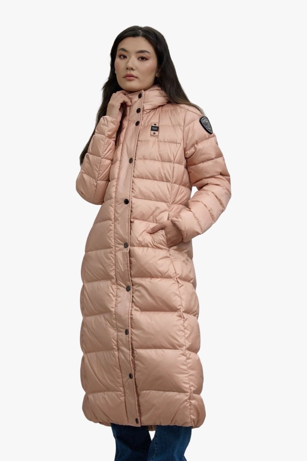 Blauer ANITA dlouhá dámská prošívaná péřová bunda s voděodpudivou úpravou růžová