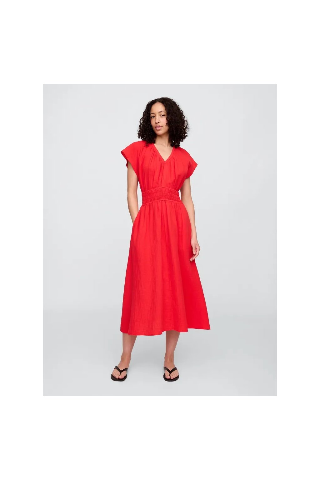 - Výstřih s jemným řasením na elastickém lemu dodává šatům romantický nádech, zatímco elastický pas s řasením vytváří ženskou siluetu a zároveň poskytuje maximální pohodlí.