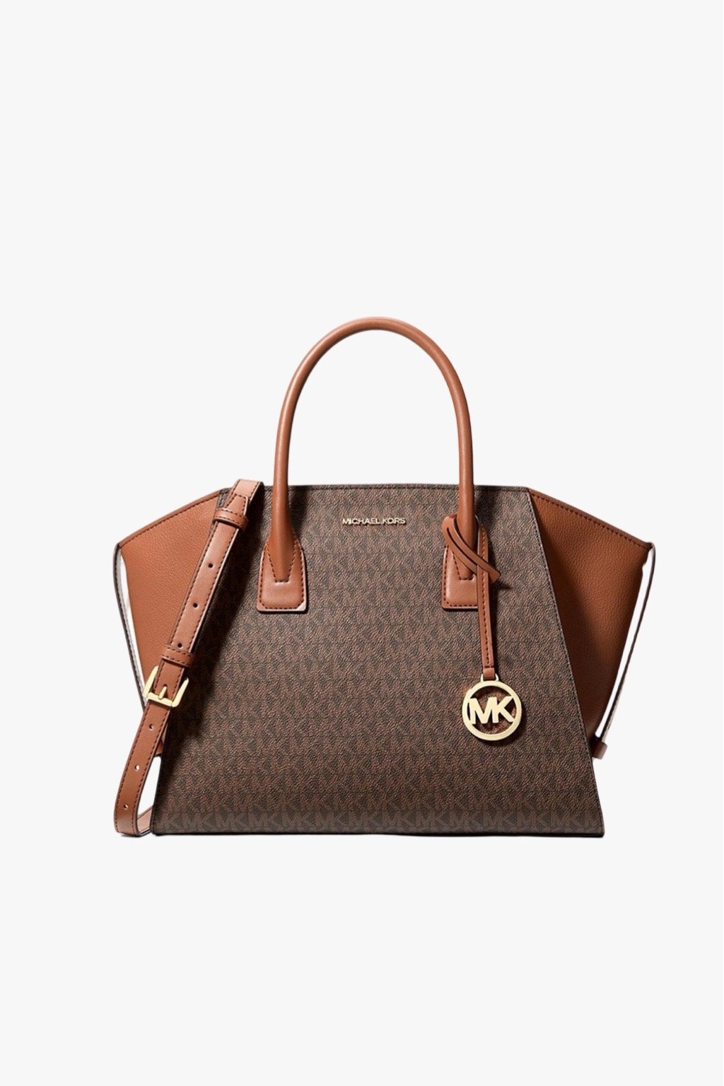 Michael Kors AVRIL large top zip satchel brown monogram dámská kabelka