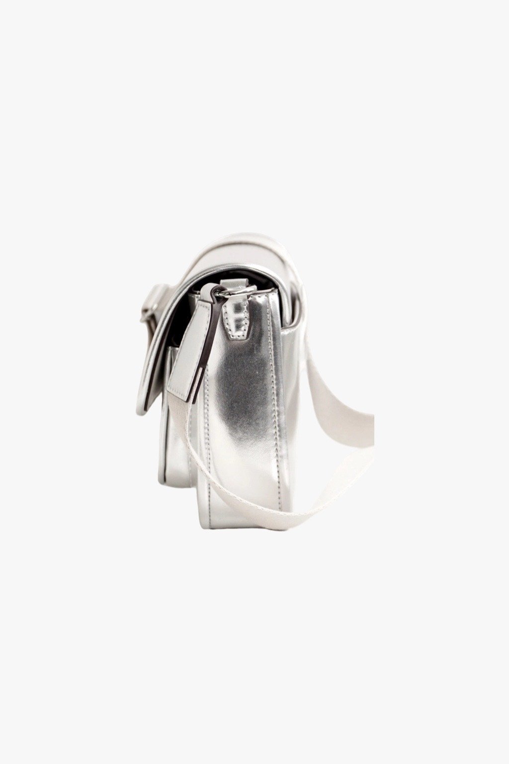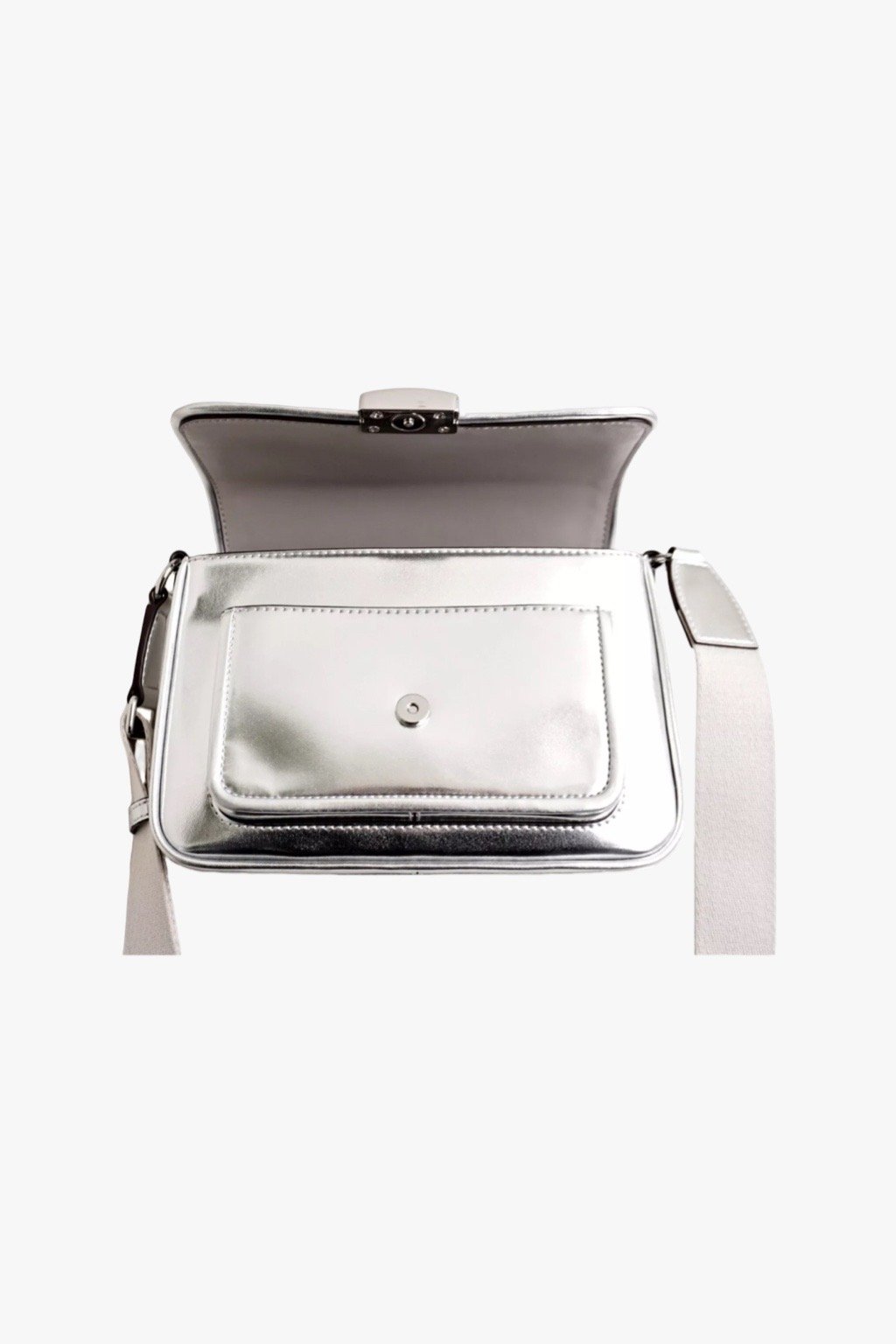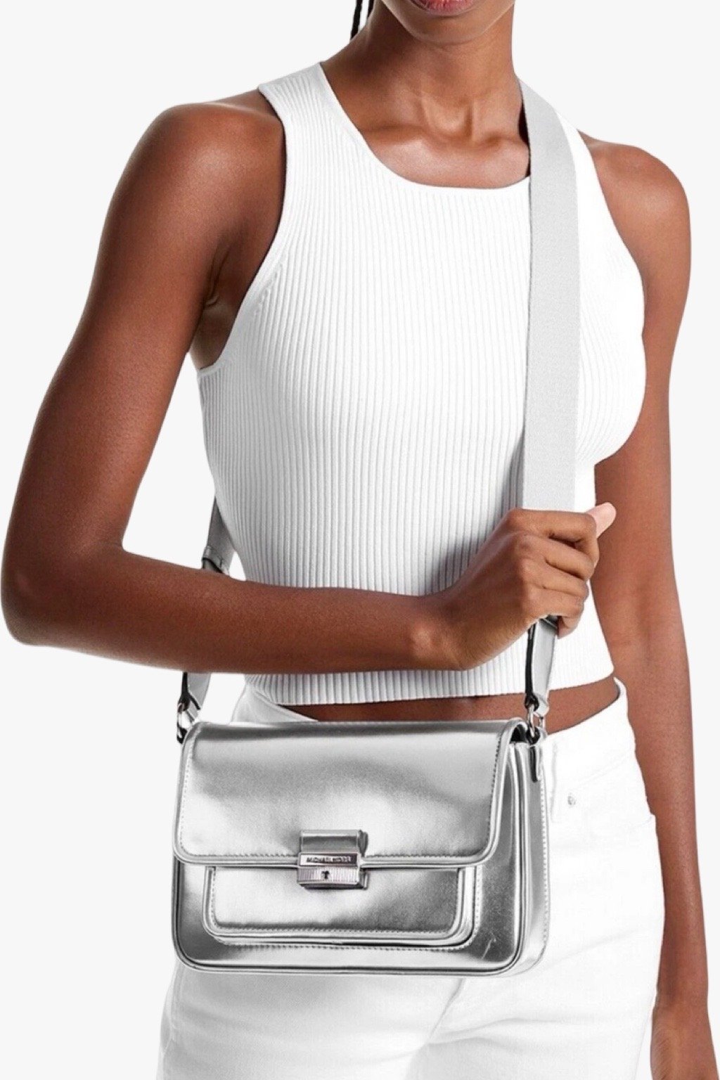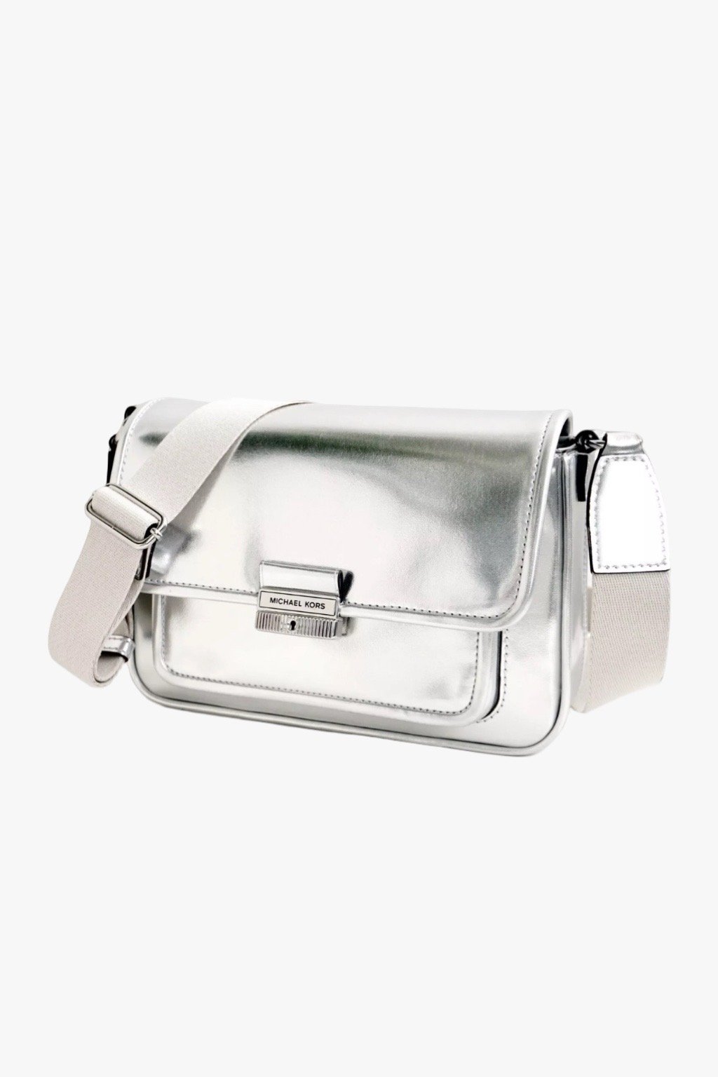 Michael Kors BRADSHAW MD pkt messenger dámská kožená kabelka stříbrná