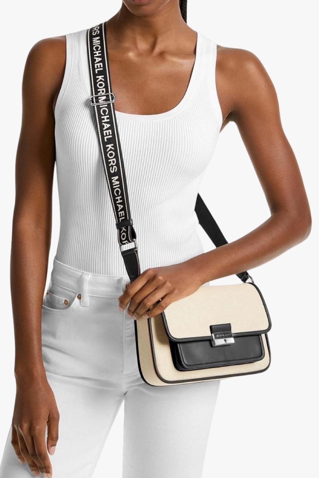 Michael Kors BRADSHAW MD pkt messenger jacquard natural černá dámská kabelka