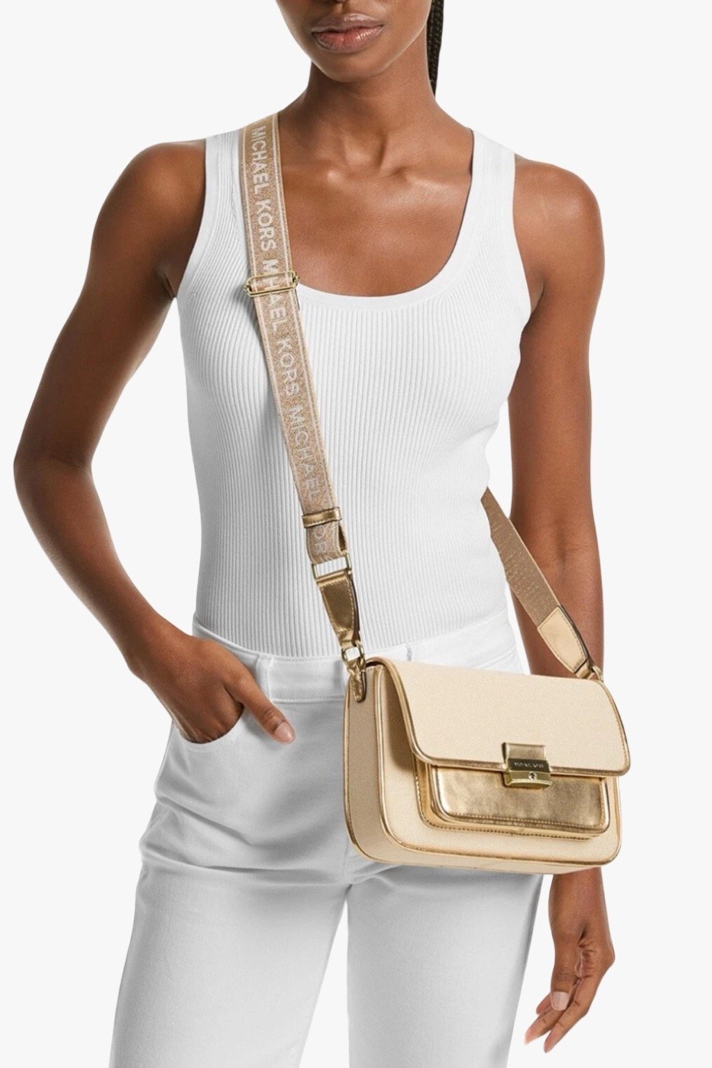 Michael Kors BRADSHAW MD pkt messenger jacquard natural pale gold dámská kabelka