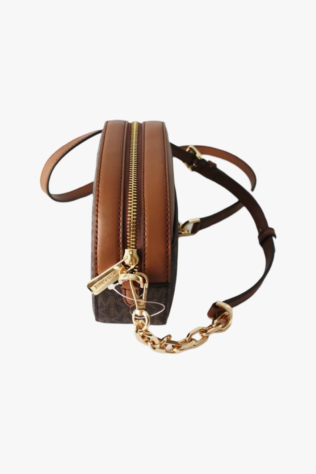 Michael Kors JS GLAM small front pocket oval crossbody dámská kabelka brown monogram