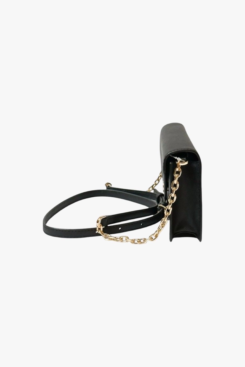 Crossbody popruh je upevněn vně kabelky na dva patenty