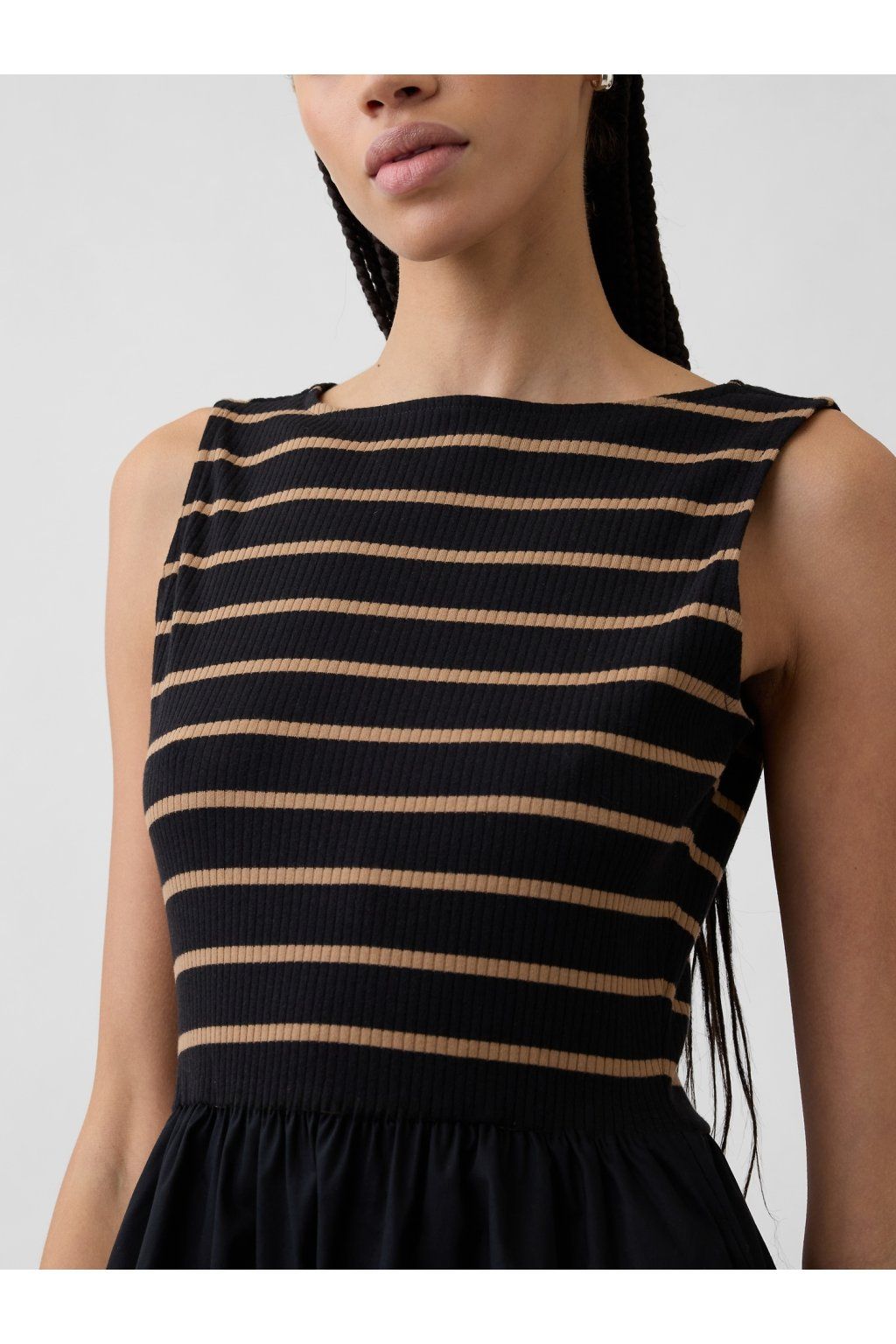 - Dámské šaty s měkkým žebrovaným vrškem a hladkou tkanou sukní.