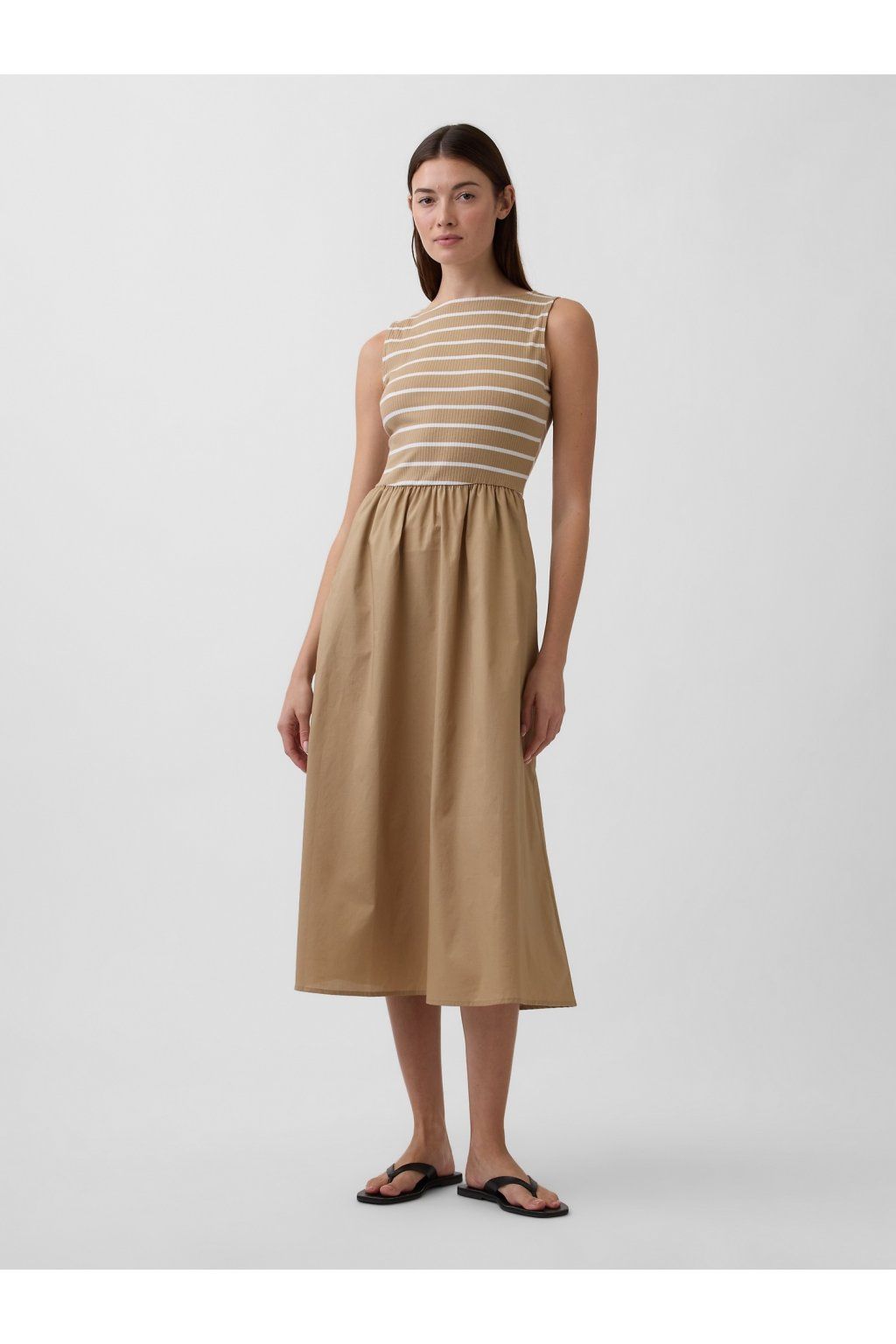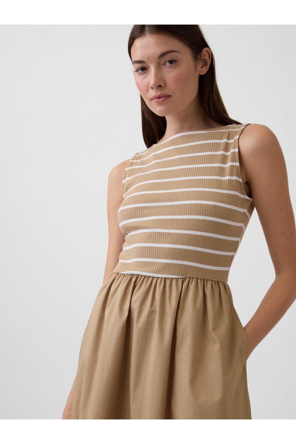 - Dámské šaty s měkkým žebrovaným vrškem a hladkou tkanou sukní.